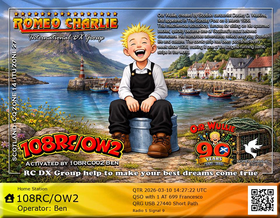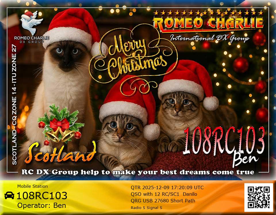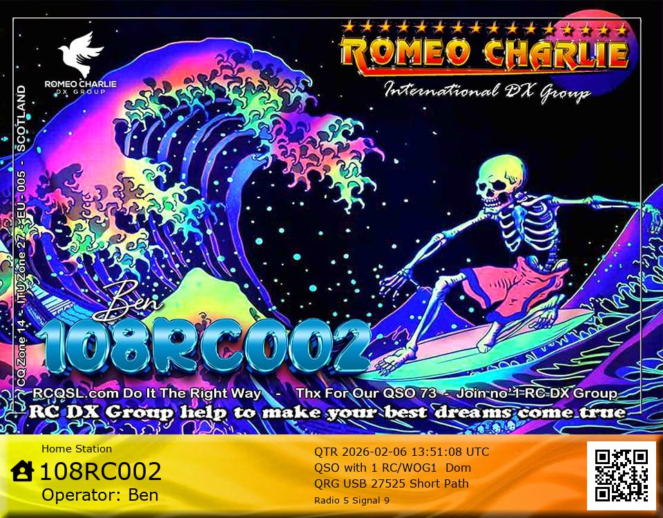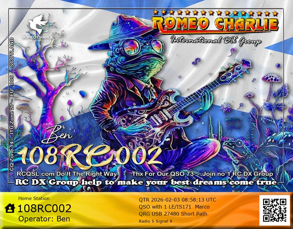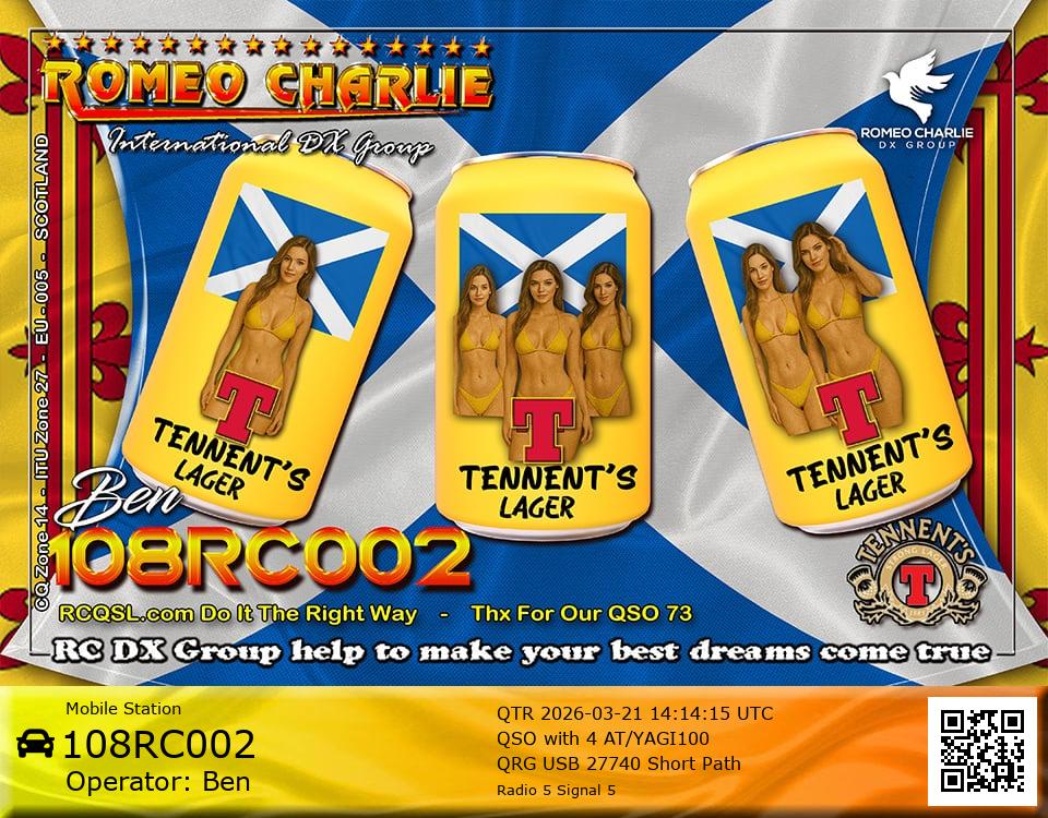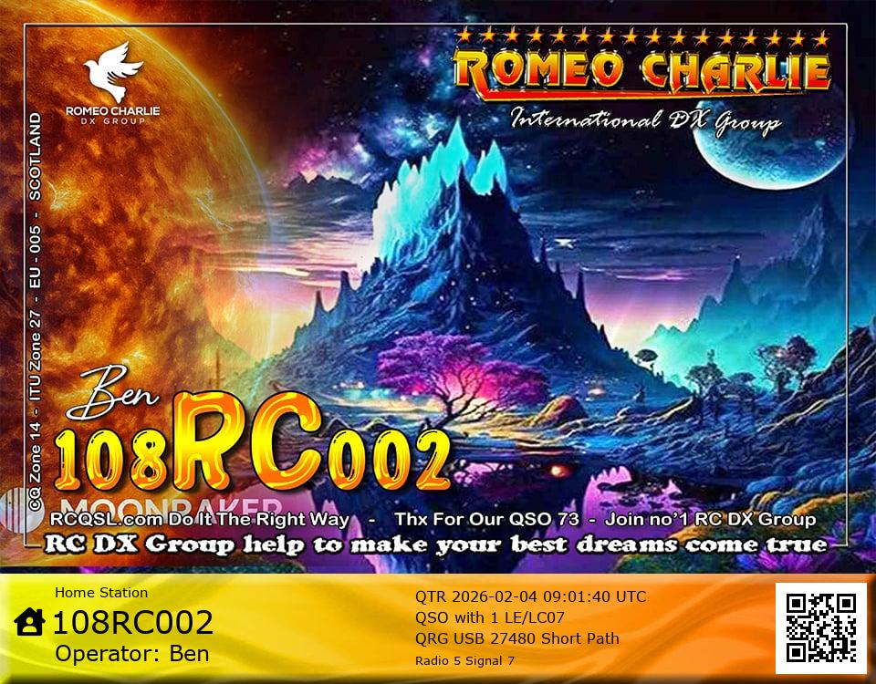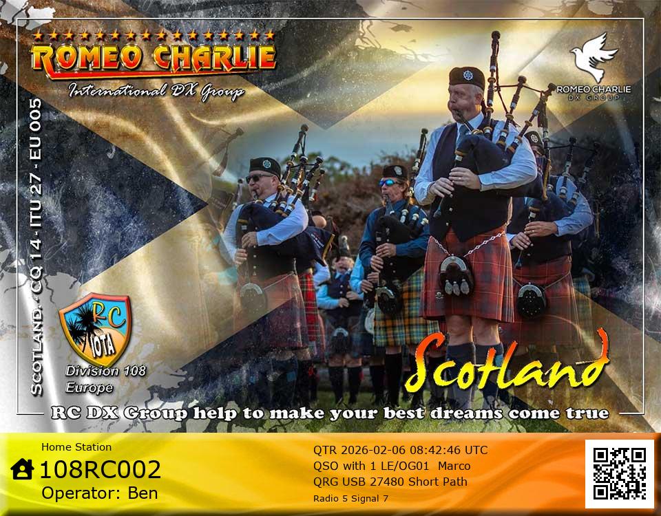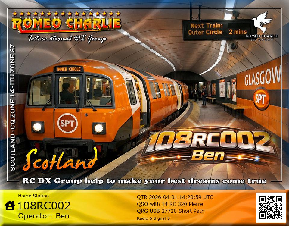 Hi im Ben 108RC002 Ex 108RC103 im 58 years old from Glasgow ive just joined the group on 27/05/2023 and look forward to making contact with other RC members around the world. My working conditions are FT891 with sirio 4000 megawatt for mobile. From home im using G5RV wire antenna inverted V . I was on the radio back in 79-80S and have just recently came back on air in the last 3 or 4 years. i hope to speak with you soon 73's 51's .From Glasgow Scotland. If By any chance you have not recieved my eqsl card please let me know via my email or on my 108RC002 facebook page i always send eqsl 100\\\\\\\\\\\\\\\\\% 108rc103@gmail.com