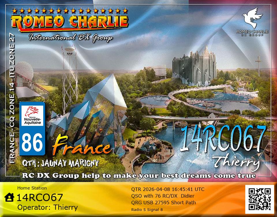 DXCC with his Roméo Charlie callsign.