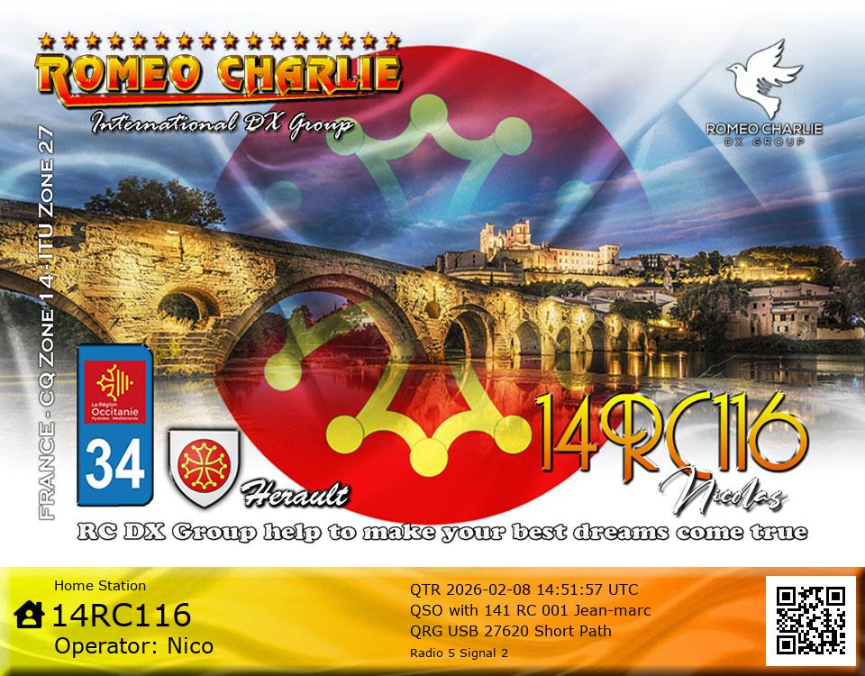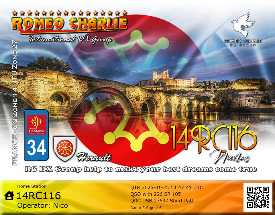 QSL Manager : e-QSL only via RCQSL.com ou nico.rc116@gmail.com