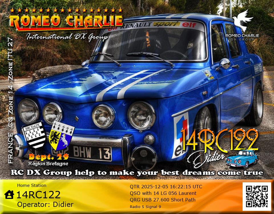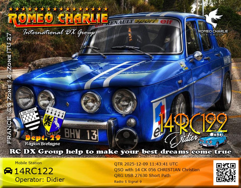 DXCC with his Roméo Charlie callsign.
