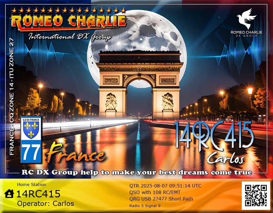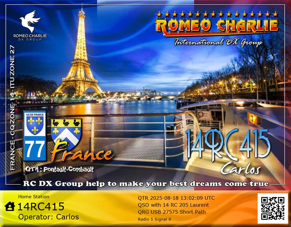 DXCC with his Roméo Charlie callsign.