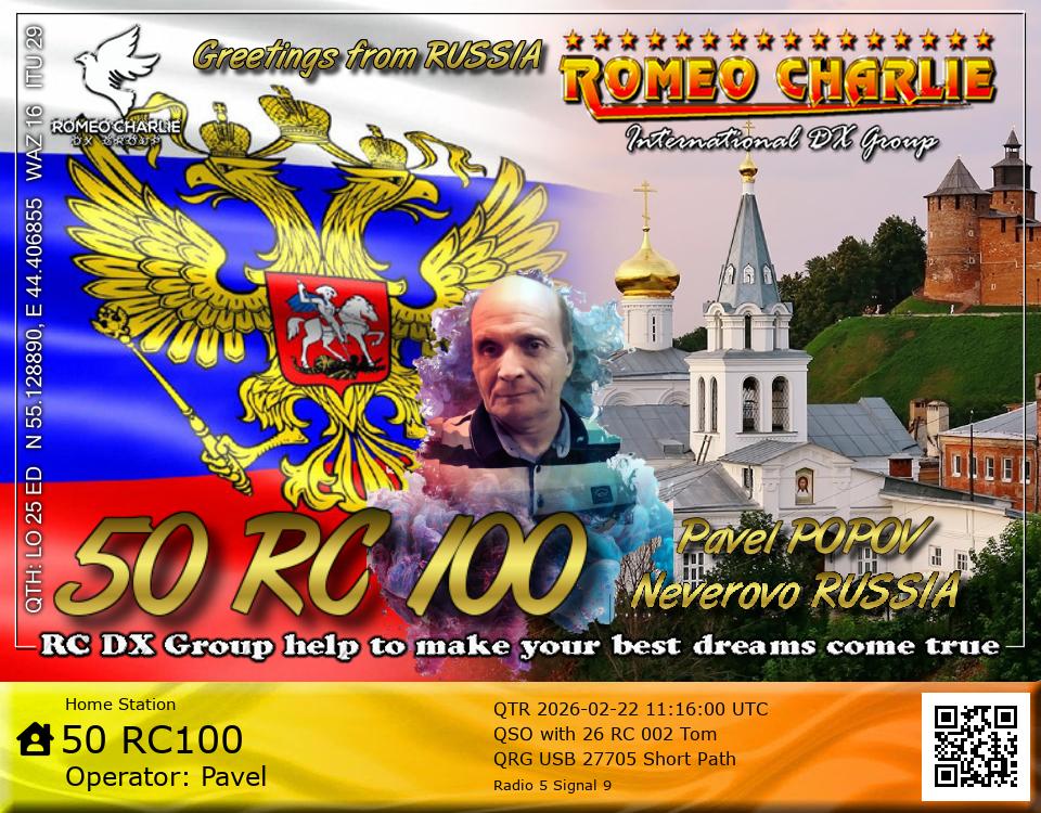Hi all! My name is Pavel, born in 1966. I live in the small village of Neverovo (LO25ED). Radio has been a hobby of my life. I have been a member of the RC since 06.02.2022. Always glad to meet new people on the air.