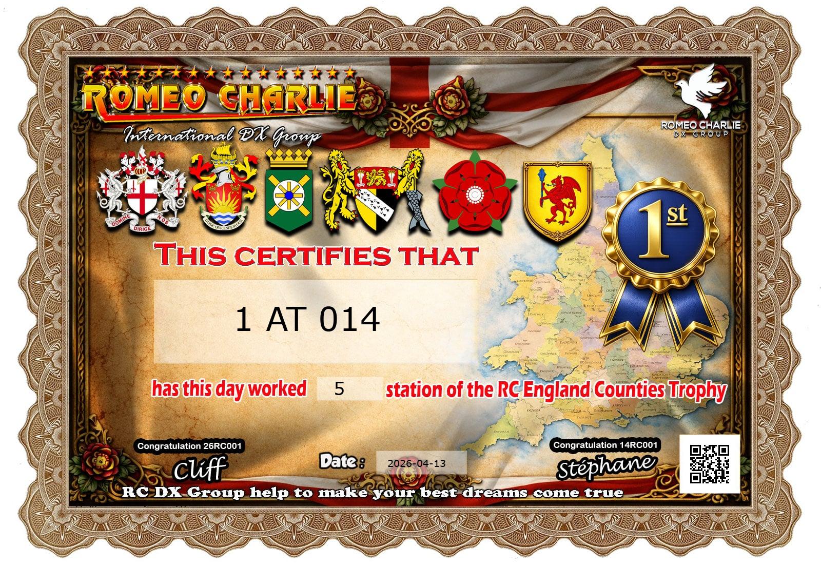 Contact all stations RC/ English counties activations to obtain the award.